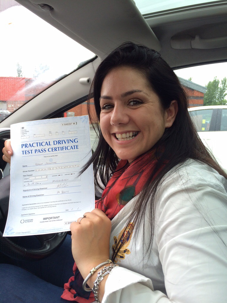 Gemma Johnston from Port Seton Congratulates herself on not only a 1st time Pass, but mainly for only swearing at the examiner once on test.